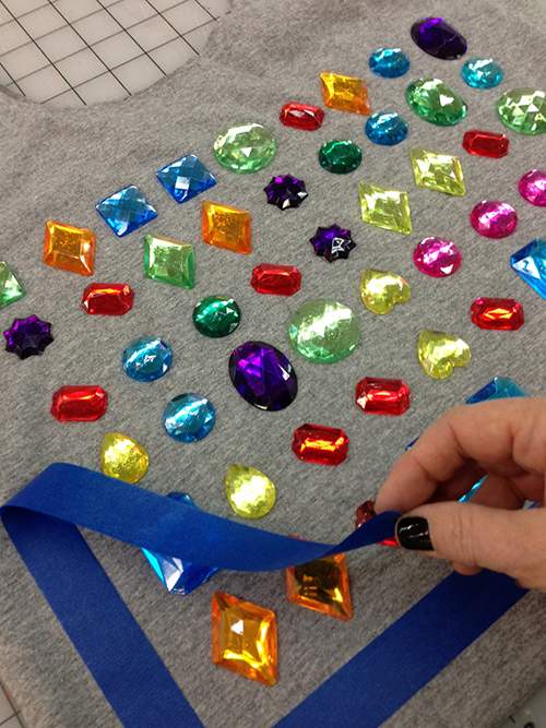 Now apply a small amount of Fabric Fusion to the back of each rhinestone gem and press in place.