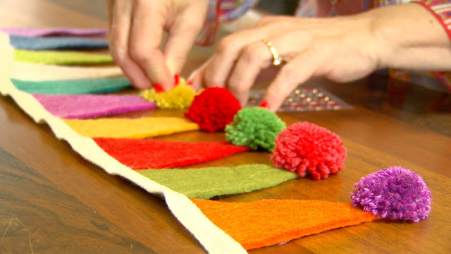 Adhesive Aleenes craft Crafts crafty crochet decorate DIY Double-stick dry adhesive easy embellish felt front door decor Glue handmade Home how-to how-to video ideas instructions Jewelry Metal tabs make maker Michaels Store mini pompom PattieWack PattieWilkinson Pattywack pennant Pom-Pom pom-pom banner Pom-Poms pompom pompommaker Projects RedHeart step-by-step supplies Tabs Tacky tools wool yarn